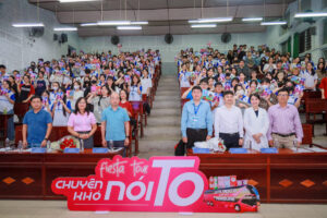 Chương trình mở đầu bằng những lời chia sẻ từ đại diện DKT Mekong và các đại biểu của trường đại học, gửi gắm thông điệp về tầm quan trọng của việc trang bị kiến thức sức khỏe sinh sản và sức khỏe tình dục đúng đắn cho thế hệ sinh viên – những người đang học cách tự lập, yêu thương và bảo vệ chính mình.