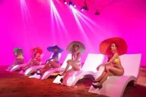 Trong MV Bikini có sử dụng rất nhiều trang phục thể hiện đường cong quyến rũ của phụ nữ và không thể thiếu những bộ bikini nóng bỏng và gợi cảm.
